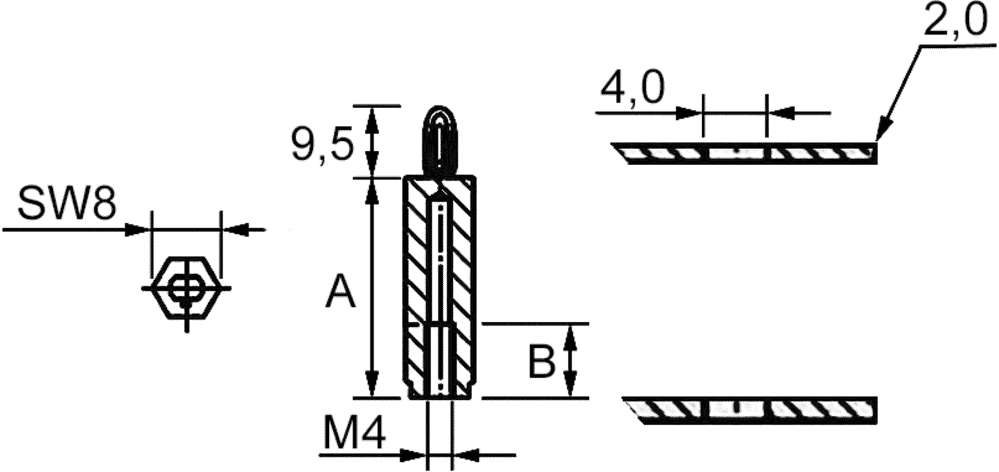Distanziali per circ. stamp. M4, L=30 mm